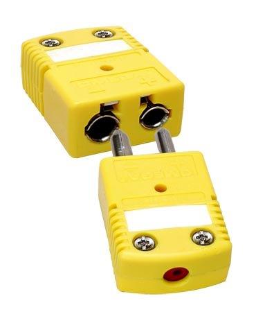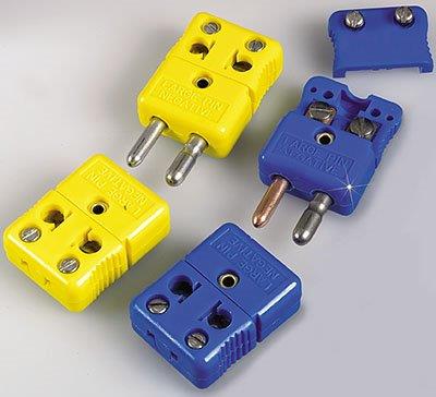 These flat/round pin connectors are ideal for connecting thermocouple sensors and extension or compensating cable to each other. The pins are polarised to avoid an incorrect connection and the connector body is additionally marked for polarity. They are rated for use up to 210°C, 350°C or 650°C